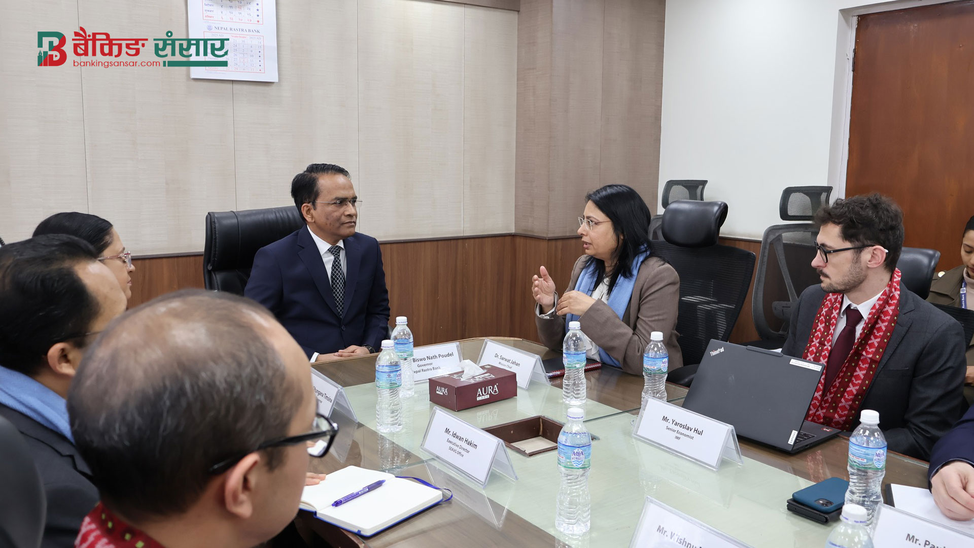 काठमाडौँ। होवलदार युनुसले नेपाल राष्ट्र बैंकका गभर्नर डा. विश्वनाथ पौडेल र आईएमएफका प्रतिनीधिबिच भेट गरेका छन् । माघ २३ गते उनीहरूबीच भेट भएको हो।