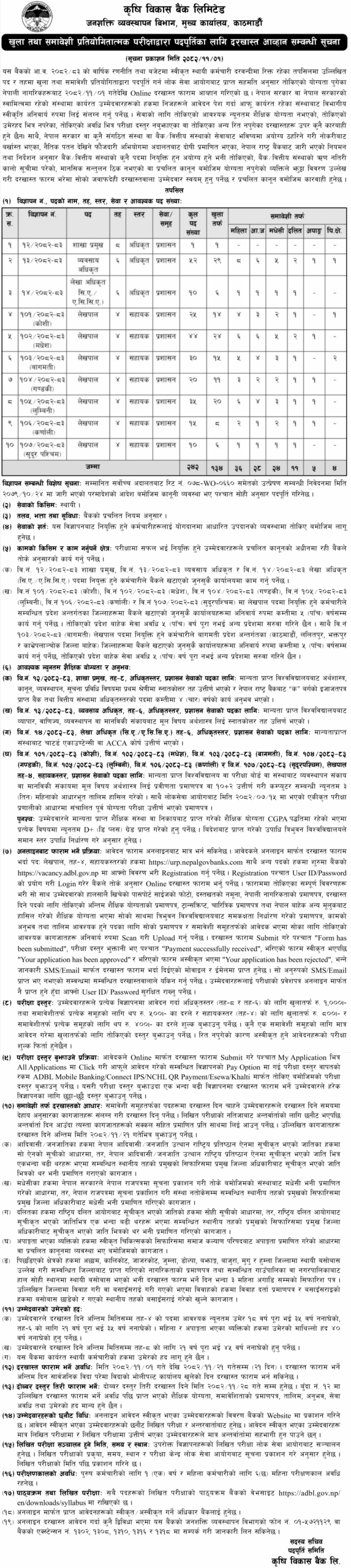 कृषि विकास बैंकमा जागिर खुल्यो !